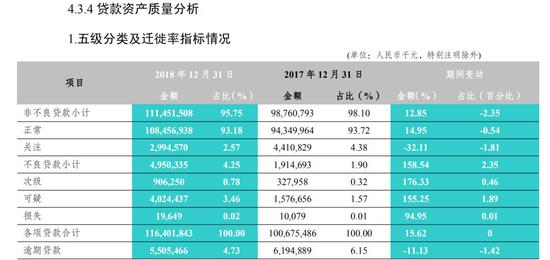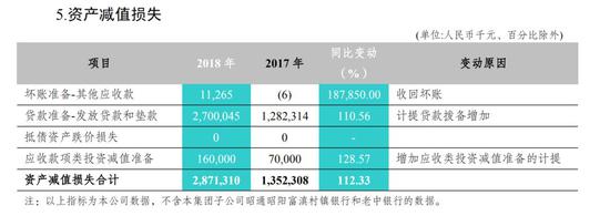 年报显示,截至2018年末,富滇银行不良贷款率为4.25%,较2017年末增加2.35个百分点;不良贷款拨备覆盖率为104.88%,较2017年末减少了66.49个百分点;贷款拨备率为4.46%,同比增加1.2%。   值得一提的是,过去一年中富滇银行资产减值损失达到28.71亿元,同比增长112.33%。其中,发放贷款和垫款减值损失为27.00亿元,同比增长110.56%;应收款项类投资减值准备为1.60亿元,同比增长128.57%。